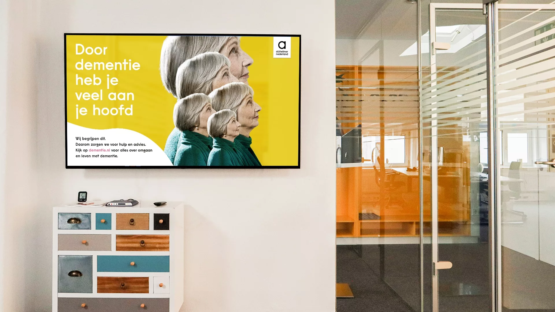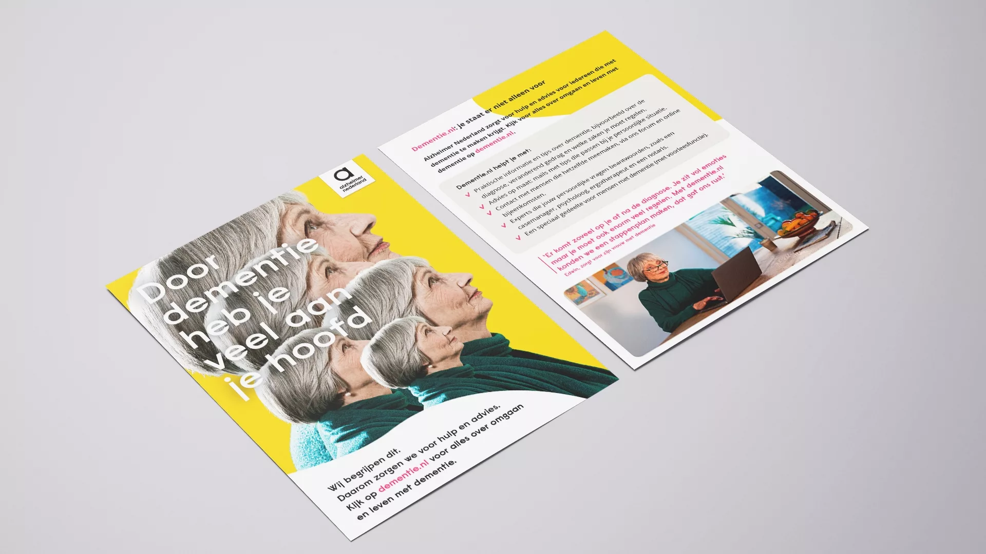 The mission of Alzheimer Netherlands is a future without dementia and a better quality of life for people with dementia and their loved ones. To achieve this, Alzheimer Netherlands offers direct help and support in addition to fundraising and financing research. This ensures that people with dementia can continue to actively participate in society and stay comfortably at home for as long as possible. They provide this help and support, for example, through their website dementie.nl, the Dementia Helpline, and Alzheimer Cafés and Meeting Points. It's good and necessary that these services exist because dementia presents many complex challenges in various areas in the short and long term: emotional, physical, medical, financial, legal, and social. Dealing with dementia can be overwhelming. With this insight, we collaborated with Alzheimer Netherlands to develop an overarching campaign to increase awareness of and use of these services.