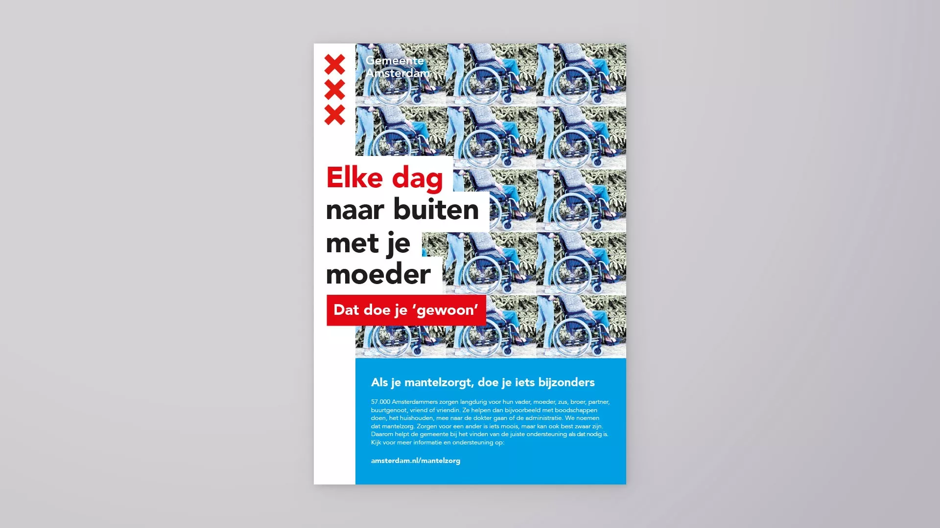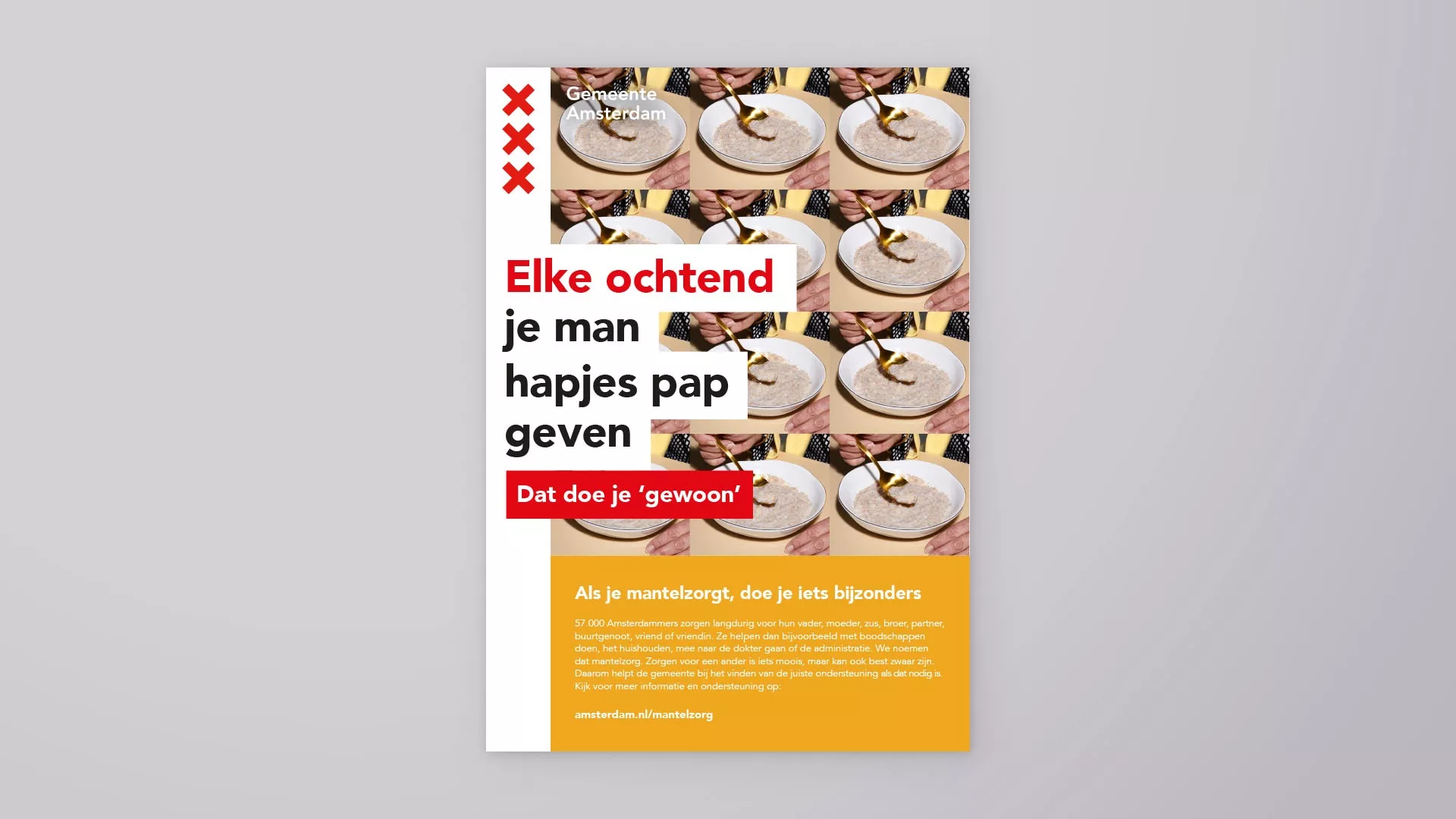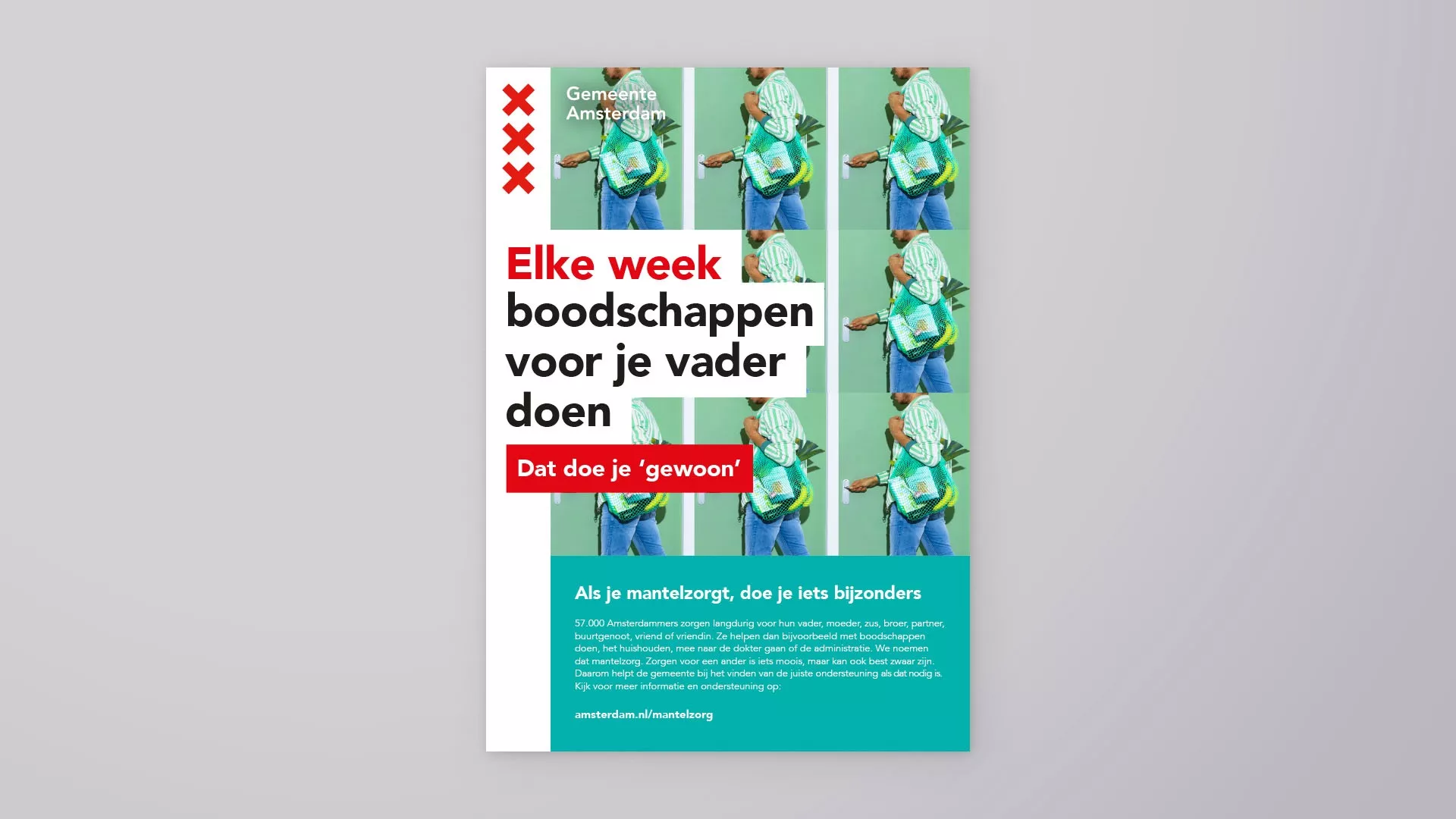 The City of Amsterdam would like to make its residents aware of what informal caregiving (‘mantelzorg’) is and express appreciation for the 57,000 Amsterdam residents who provide care to a partner, family member, or neighbor. We rolled out a campaign under the communication theme "When you provide care, you do something special", including outdoor, advertisements, social advertising, and a mini documentary series. The campaign is charged with an emotional manifesto advertisement in the Parool newspaper, signed by the Alderman of Health and Welfare. The communication materials clearly indicate what activities fall under caregiving and highlight the weight of caregiving by showing that it involves providing care on a regular basis. Truman found filmmaker Frans Bromet willing to collaborate on a mini-documentary series about Amsterdam residents who provide care. The emotional stories bring a deeper layer of content to the campaign.