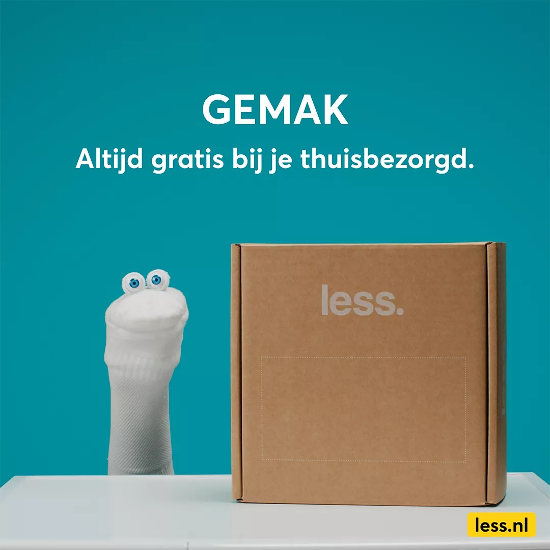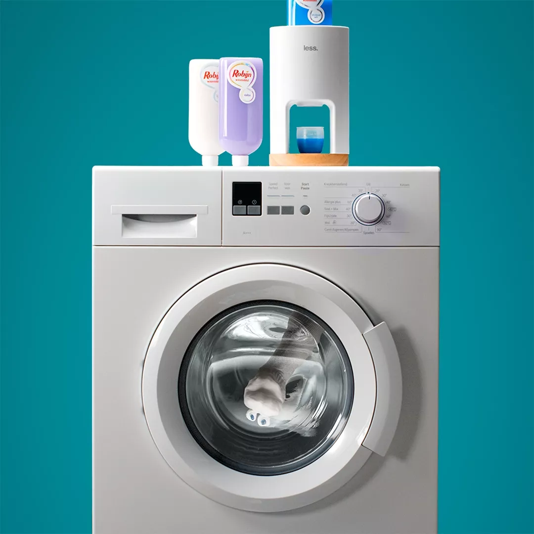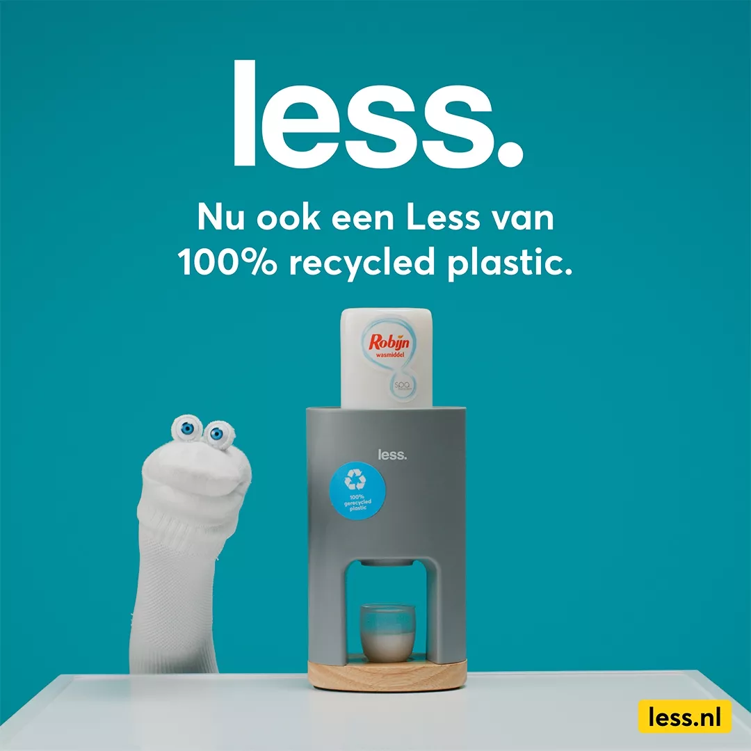 For the Unilever startup Less we developed a brand positioning and an advertising property. Less is a smart and stylish dosing system, which allows you to use just the right amount of detergent. Which is good for your clothing and the environment. The detergent bottles are delivered by mail. We developed a likeable experience expert who knows about washing. A white sock named Leslie.