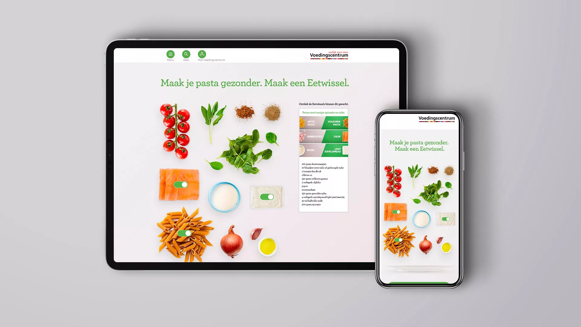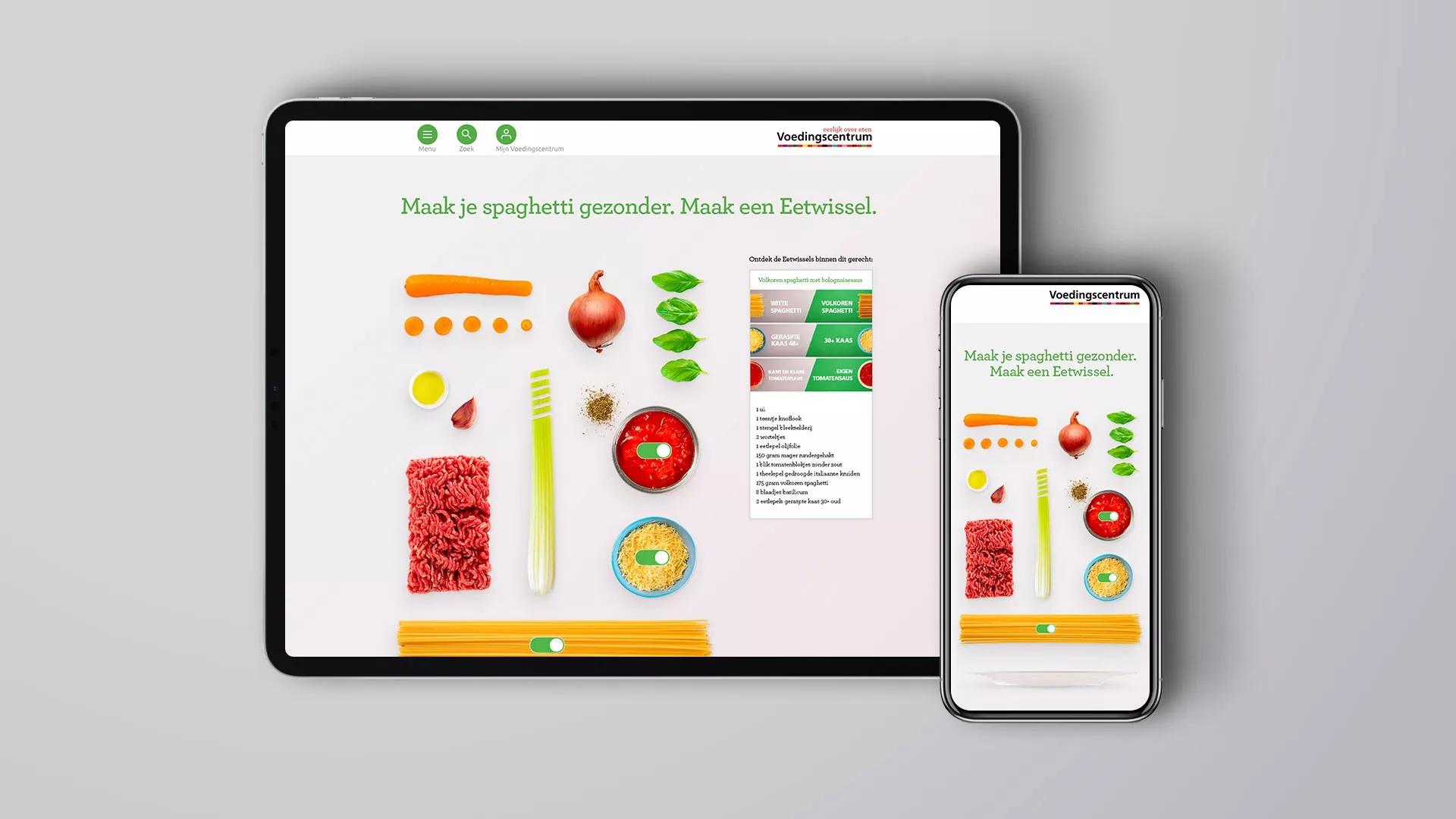 After the introduction of the Foodswap (‘Eetwissel’) and the follow-up campaign about Foodswap moments and places, it was time for the next step in the campaign. We wanted to give the Dutch people an extra action perspective to eat healthier and more sustainable: swap ingredients in recipes that you often make. This way, you can easily make your pasta, stew, or wrap healthier in small steps.